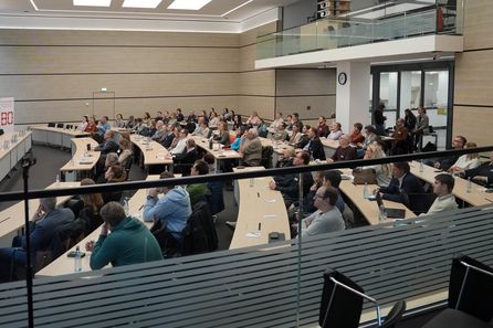 Rund 90 interessierte Teilnehmende besuchten die Auftaktveranstaltung der Workshop-Reihe „Mit Fördermitteln kommunale Zukunft gestalten“ am 11. Dezember 2025 in Essen. Das Ziel der Reihe ist es, kommunale Akteur*innen praxisnah dabei zu unterstützen, Fördermittel gezielt für eine nachhaltige Stadt- und Regionalentwicklung zu beantragen. Organisiert wird die Reihe von THALESruhr, dem Nachhaltigkeitsprojekt der Hochschule Bochum, in Kooperation mit dem Regionalverband Ruhr.